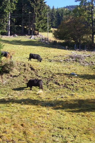 | |  | | | Jörgls friedliche Angusrinder weiden oft an der Wiese am Haus... | | ... nur im Winter sind sie nachmittags schon im Unterstand. | | |