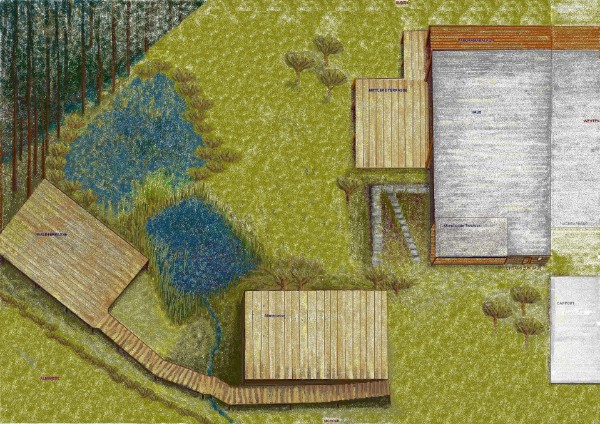 Gelände Weitläufiges eingezäuntes Areal an Waldrand + Almwiese mit Bachlauf und 2 Teichen. 4 möblierte Holzterrassen (davon eine überdacht) Zuzüglich: zig Sonnenliegen, entsprechend Liegen- und Sitzauflagen, Sonnenschirm Außendusche (Ein Kneippbecken ist in Planung.)